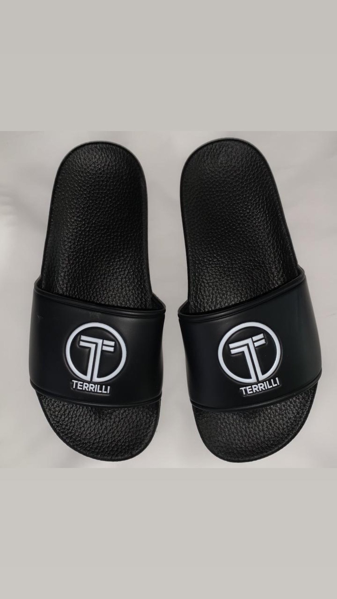 Step into effortless style and all-day comfort with the Terrilli Black Slides. Featuring a luxuriously cushioned sole and a wide strap adorned with the signature Terrilli logo, these slides are perfect for everyday wear—whether you’re out and about or relaxing at home. Available in classic black and a range of sizes to ensure the perfect fit, these slides are a versatile addition to any wardrobe, seamlessly combining fashion and function.
